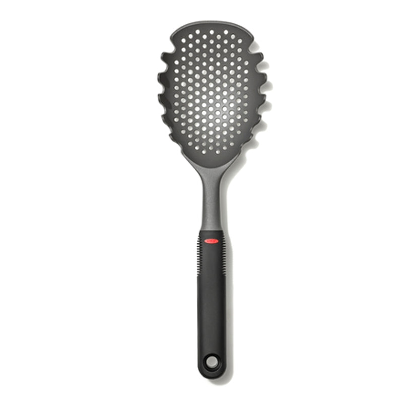 - An easier way to scoop and strain long, short or delicate pasta, without a colander.