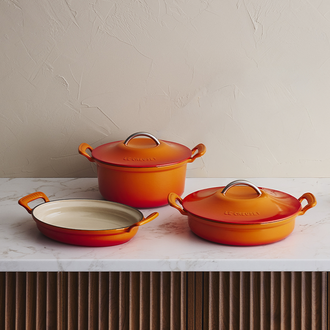 Drawing from our archives and rooted in the French craftsmanship that defines us, Modern Heritage marks more than a design evolution. It’s a tribute to the artistry, quality, and enduring style that has shaped Le Creuset for 100 years. Every curve tells a story: from the softened angles to the historic scalloped side handles, opened to offer a modern interpretation of a timeless form and capturing both nostalgia and the promise of what’s to come.