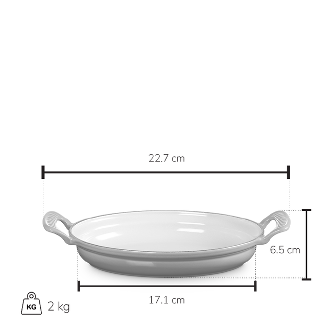 The Oval Baker is ideal for roasting, baking, casseroles, side dishes and more. The shallow, low-profile design allows heat to circulate around the food for optimal browning and crisping, while the longer, oval shape is perfectly sized for pork roasts, sides of salmon and roasting vegetables. Finished with a colourful exterior and open scalloped handles, it's ideal for cooking and serving from stove to oven to table.